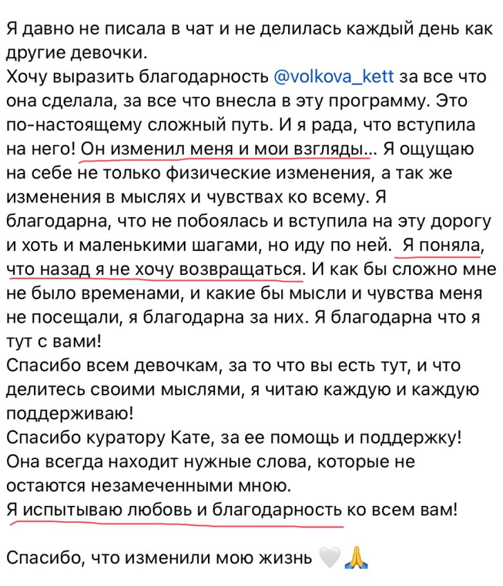 Сначала было сопротивление от сомнений, а потом начала нарастать уверенность, понимание, что «Вот она Я, вот та ах*енная девчонка». Записалась на спорт, купила дорогое обучение, буду создавать свои продукты!